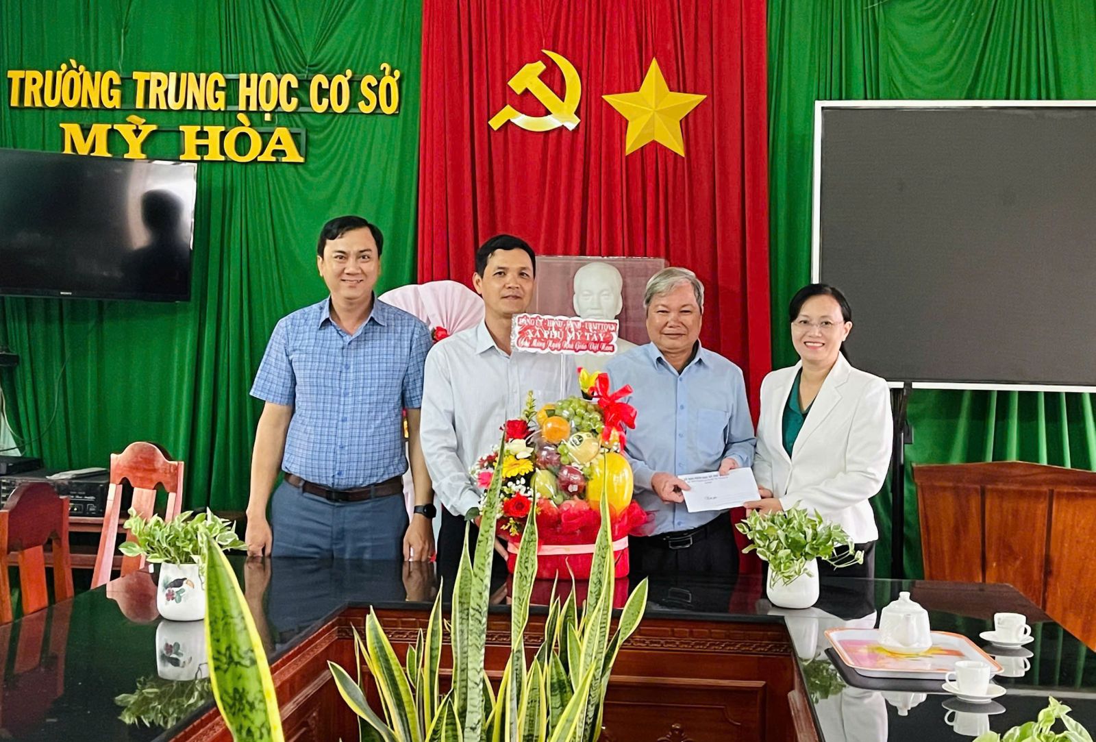 Nhân dịp này, các đoàn cũng gửi tặng hoa, quà và những lời chúc tốt đẹp đến tập thể sư phạm các trường.