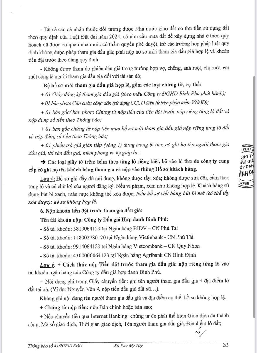 (Ký hiệu, vị trí, giá khởi điểm, tiền đặt trước, tiền bán hồ sơ mời tham gia đấu giá, bước giá của từng lô đất: Có phụ lục kèm theo thông báo 41/2025/TBĐG-BP ngày 04/11/2025).