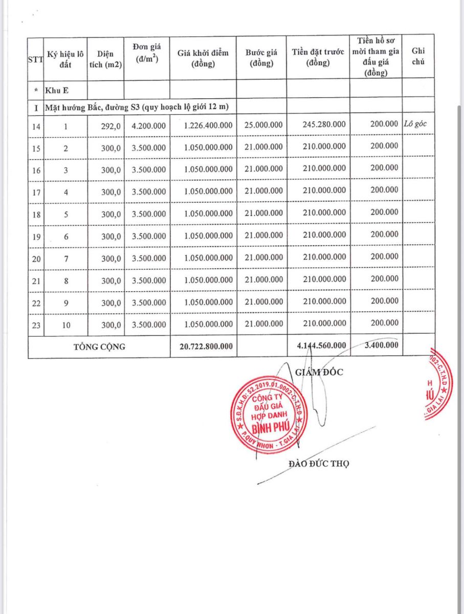 - Tổng số lượng các lô đấu giá quyền sử dụng đất: 23 lô.