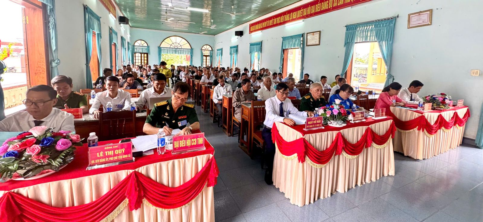 Về phía đại biểu xã có các đồng chí: Nguyễn Thị Thanh Bình – Bí thư Đảng ủy, Chủ tịch HĐND xã; Trần Anh Tuấn – Phó Bí thư Thường trực Đảng ủy xã; Ngô Vũ Hải – Phó Bí thư Đảng ủy, Chủ tịch UBND xã; Phạm Thị Ngọc Anh – Chủ tịch Ủy ban MTTQVN xã; đại diện lãnh đạo các phòng, ban, ngành của xã cùng 88 đại biểu chính thức đại diện cho 396 hội viên cựu chiến binh toàn xã.