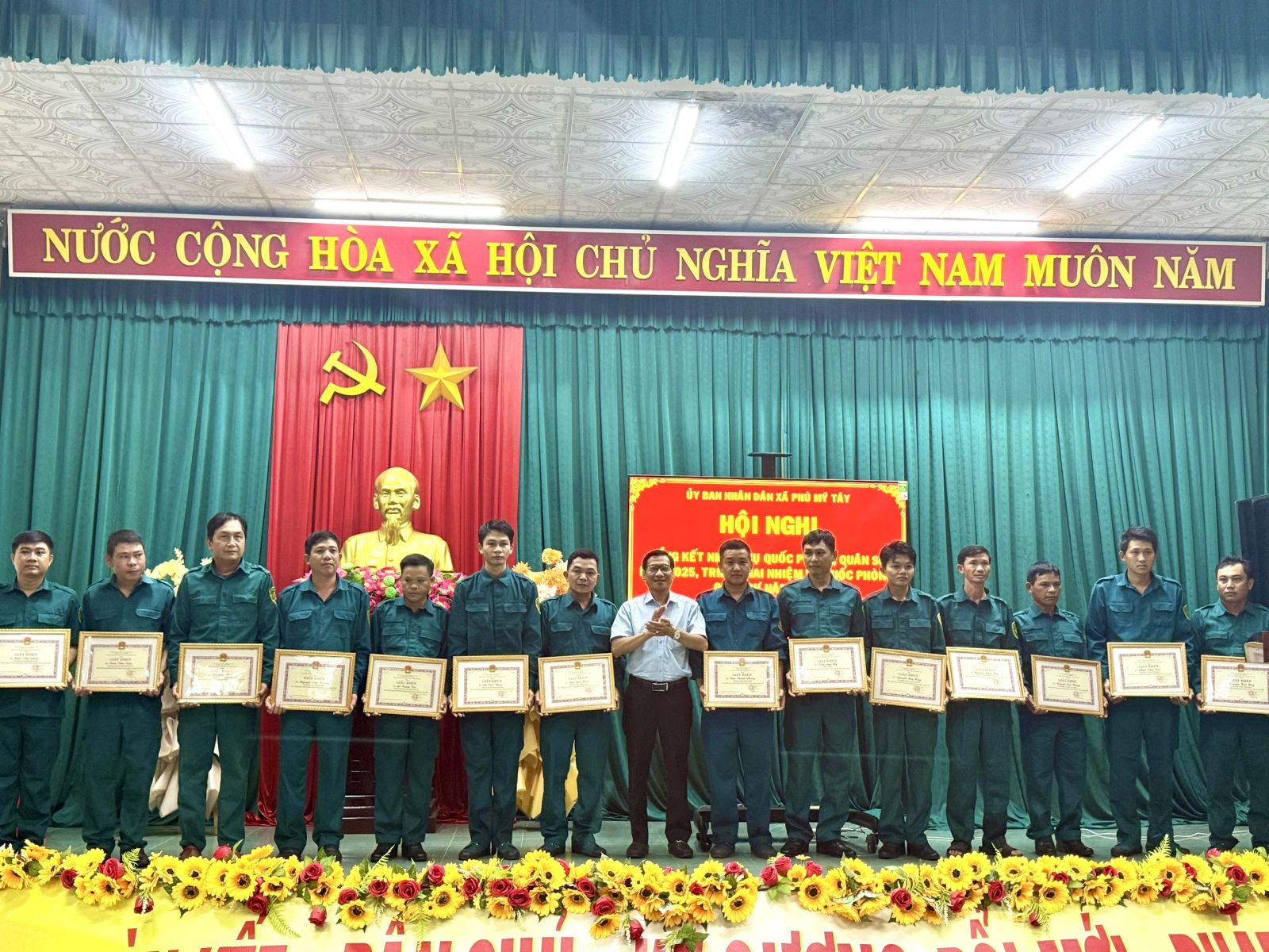 Tại hội nghị, UBND xã đã khen thưởng 10 tập thể, 14 cá nhân có thành tích xuất sắc trong thực hiện nhiệm vụ quốc phòng, quân sự địa phương năm 2025.